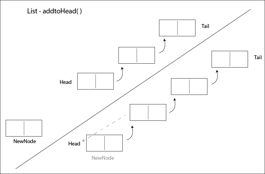 In words: for this, since we only have access to the head, we will have to first traverse the list from the head to the tail