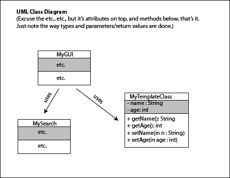 But the Teaching Note says it's not necessary to use UML, so we should take it that diagrams more detailed than Data Flow Diagrams above are not needed. Never-the-less, we do use another kind of "structure chart", and indeed a UML version of it in our IA solution process. With UML class diagrams, we demonstrate the way that classes are arranged. Below is an example. And note that we do look at UML for class diagrams in more detail during our IA solution process.
