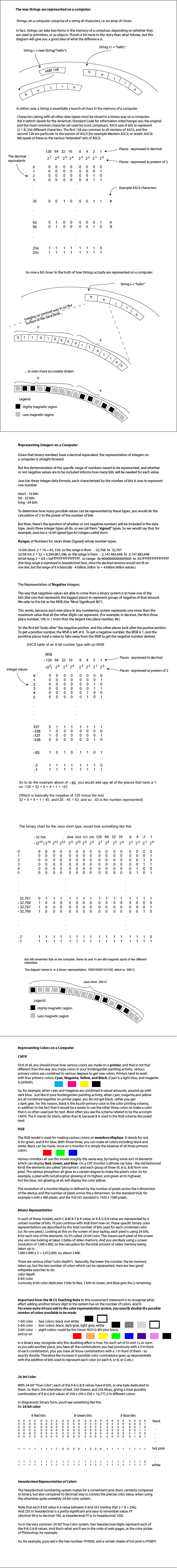 Q-A: "Outline the way in which data is represented in the computer", and " include strings, integers, characters and colours.