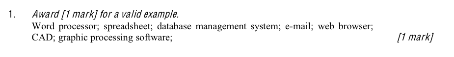 You should have an example or two ready for the various application software categories above, with brand names made by big commercial IT companies like Microsoft and Adobe. Here's one or two each to get you started:
