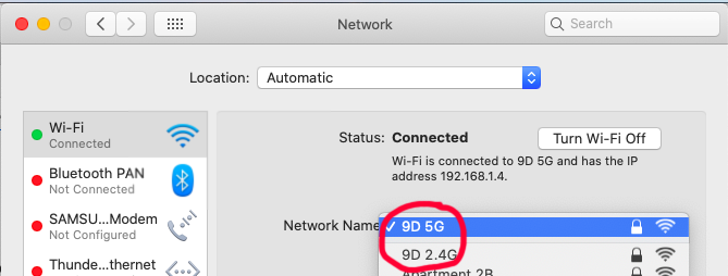 The original WiFi was based on the 2.4 GHz frequency. But now there is WiFi based on the 5 GHz frequency, and it is, undertandably, but confusingly, called "5G". BUT it is 5G WiFi, not 5G (as in 5th Generation) cellular!! See this article.