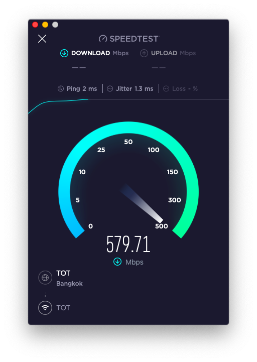 "5G" WiFi is regularly above 500 Mbps.) The poor 'lo SpeedTest app. can barely handle it!