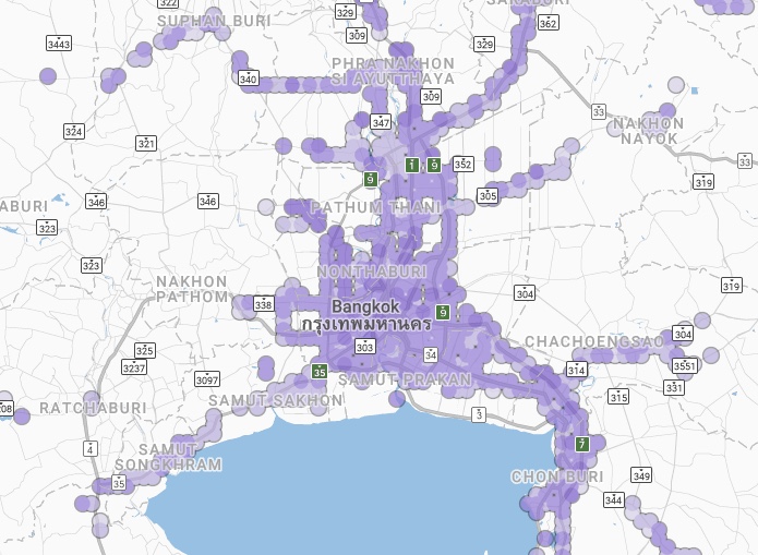 Coverage - Here is the coverage of DTAC in and around Bangkok in early 2018: