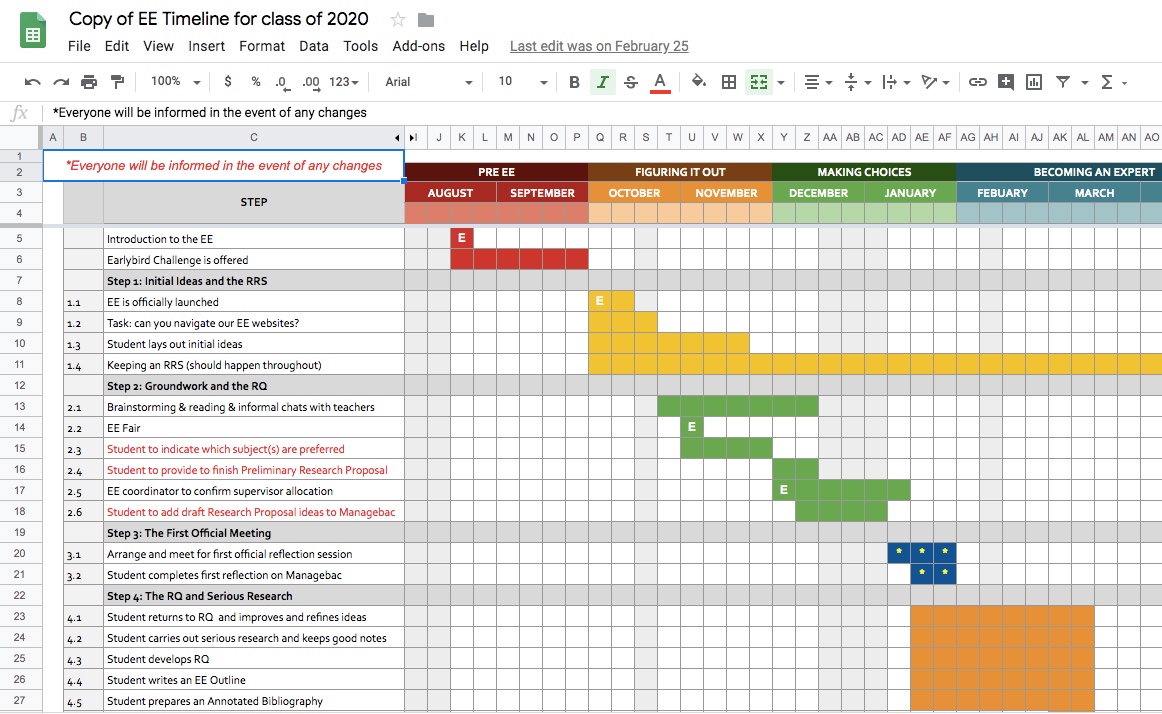 Likewise, the outlined stages of your EE process, as seen on Mr Kelly's GANTT chart (below) are: